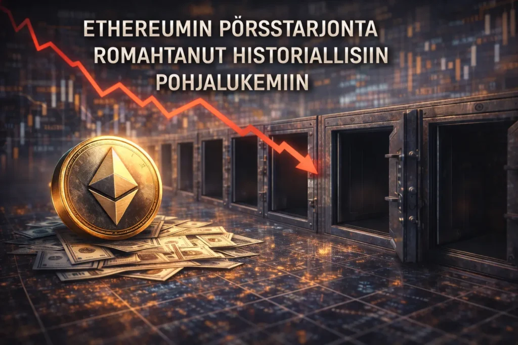 ETH:n hinta on liikkunut vaihtelevasti ja vuosien 2024–2025 aikana nähdyt huiput ovat jääneet taakse. Vaikka pörssitarjonnan supistuminen voi olla bullish-vaikutteinen signaali pitkällä aikavälillä, markkinatilanteeseen vaikuttavat myös:
